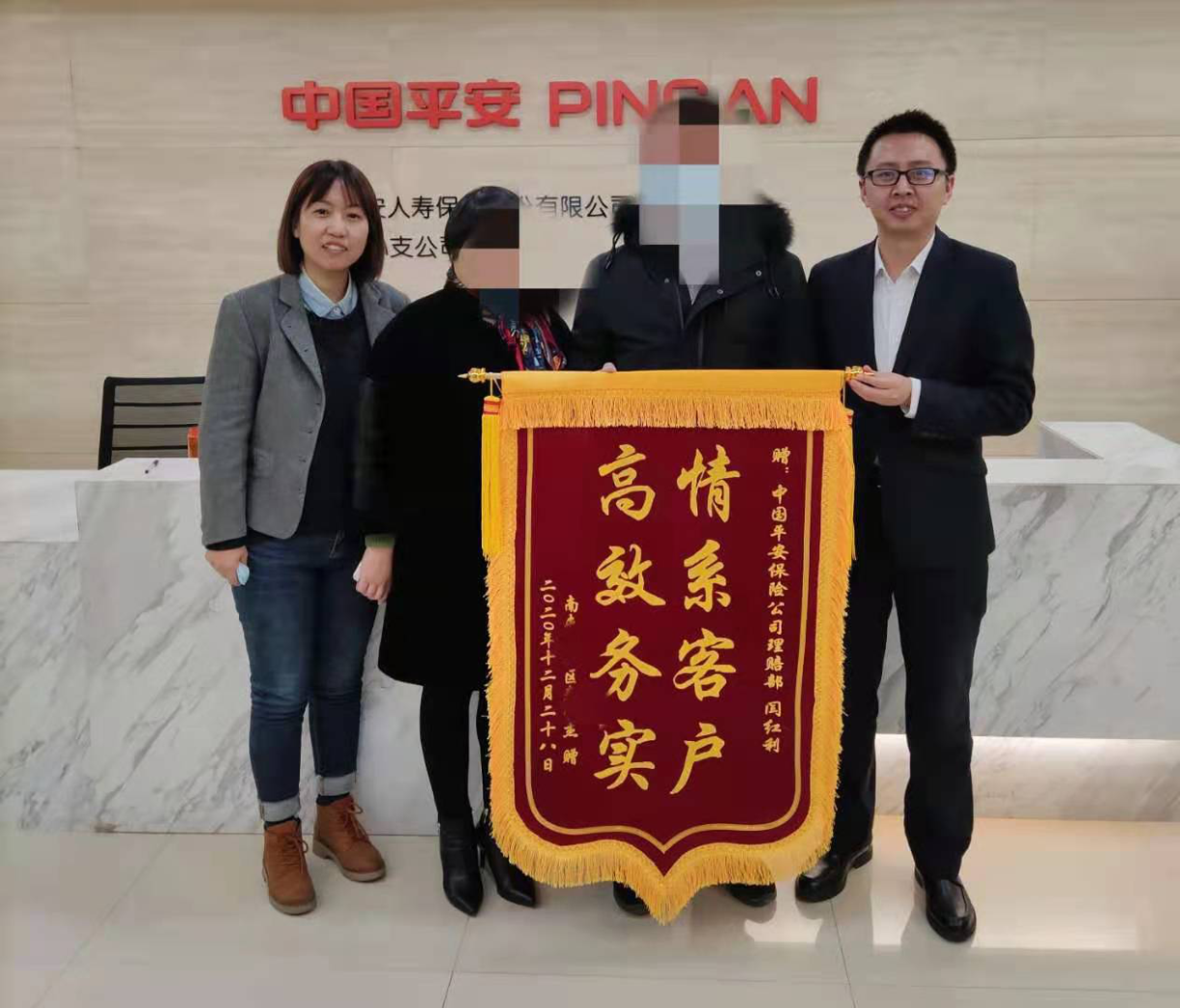 近日,理賠調查服務人員探望孩子,在與Q先生的溝通過程中,Q先生告知孩子有些時候的放化療是在門診進行的,沒有住院病歷所以就沒有交給公司,理賠調查人員核實門診發票是放化療的費用,屬于保險條款責任可以報銷,于是調查人員主動為Q先生收集齊全理賠材料協助申請,很快門診費用也完成了報銷,讓客戶非常的感動,客戶送來了錦旗表示感謝。